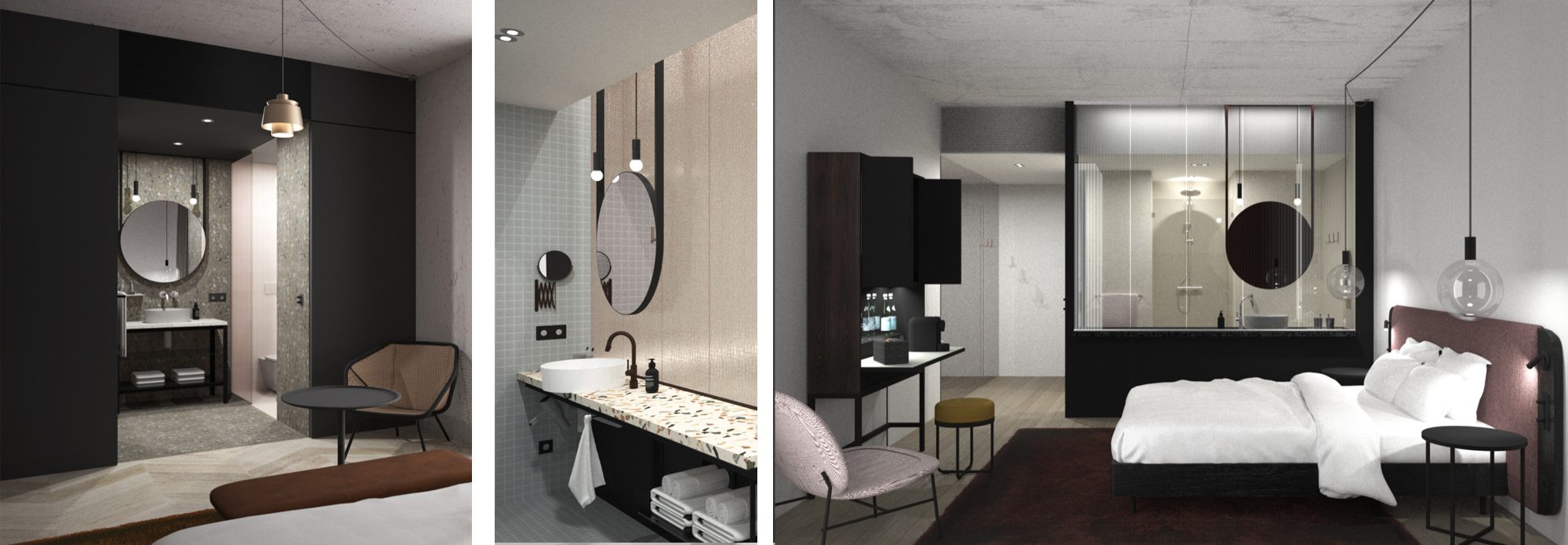 Bereits im Vorfeld waren wir für das neue Fünf-Sterne-Hotel Augustiner Hof in Nürnberg in die Materialrecherche eingebunden und am Ausbau des Musterzimmers beteiligt. Der Entwurf und die Renderings sind von dem Berliner Büro Mekado.