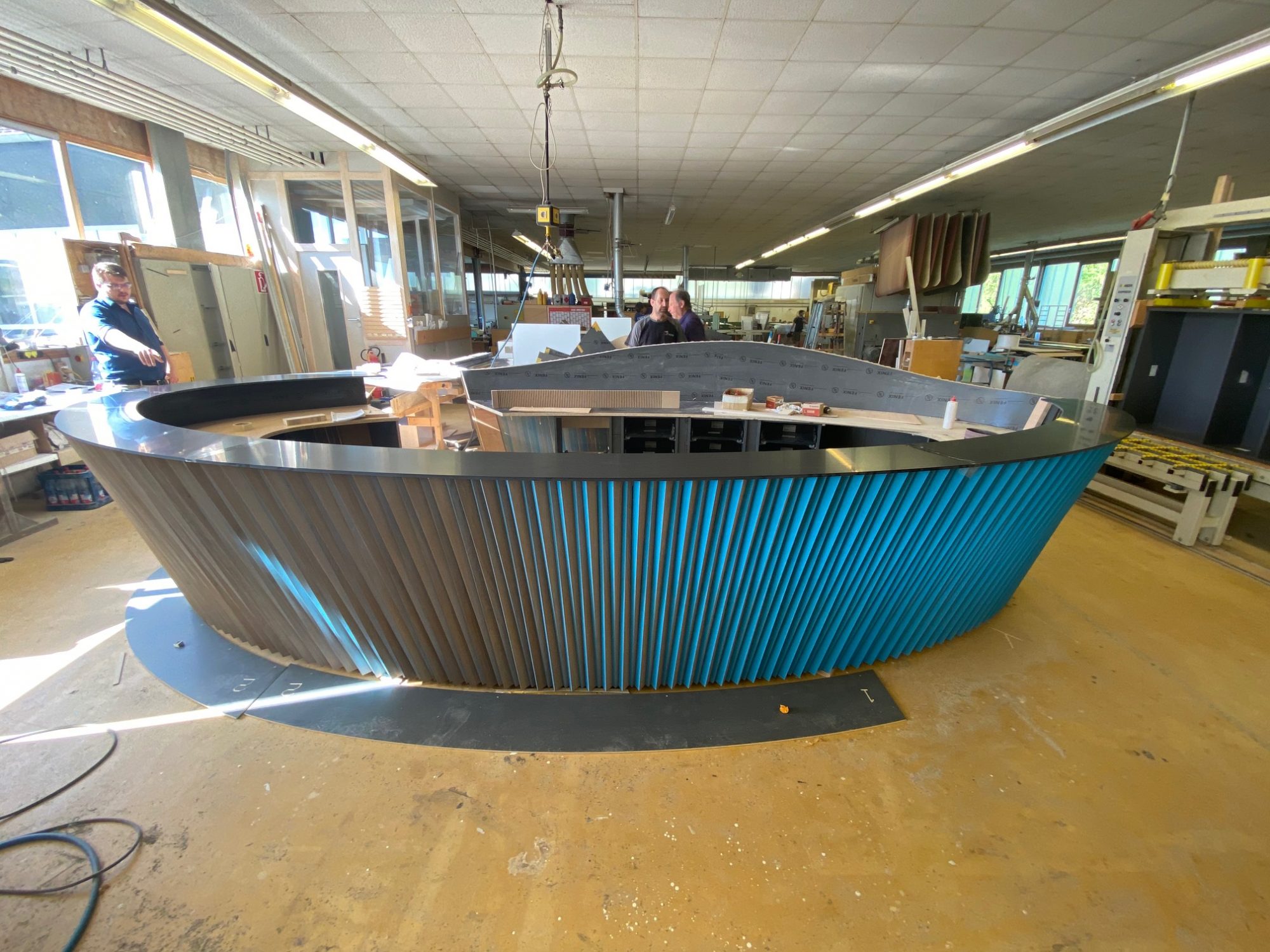 Die Theke mit den Schrägen ist im Imos geplant und ein Ergebnis unserer neuen CNC.
