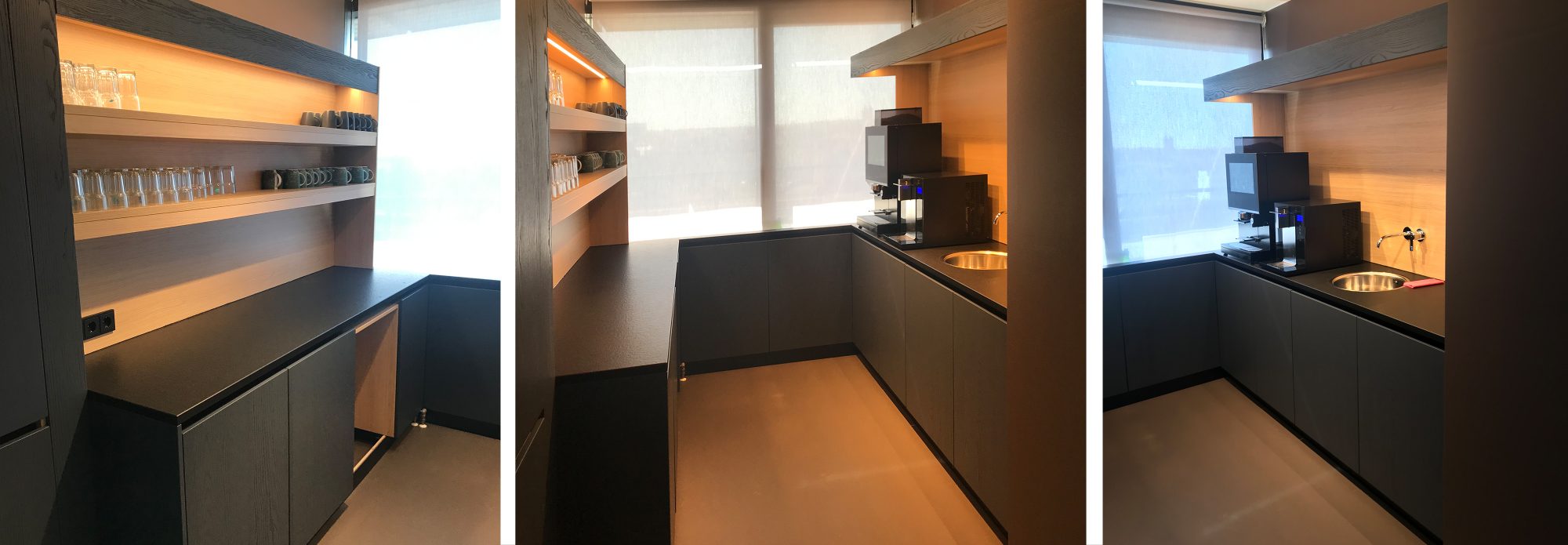 Für die Consorsbank realisierten wir zwölf Teeküchen, das Casino und die Küche in der Lounge in Zusammenarbeit mit dem Planungsbüro Neoos Neues Design.