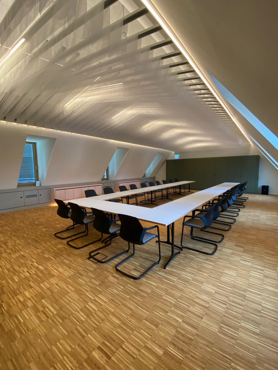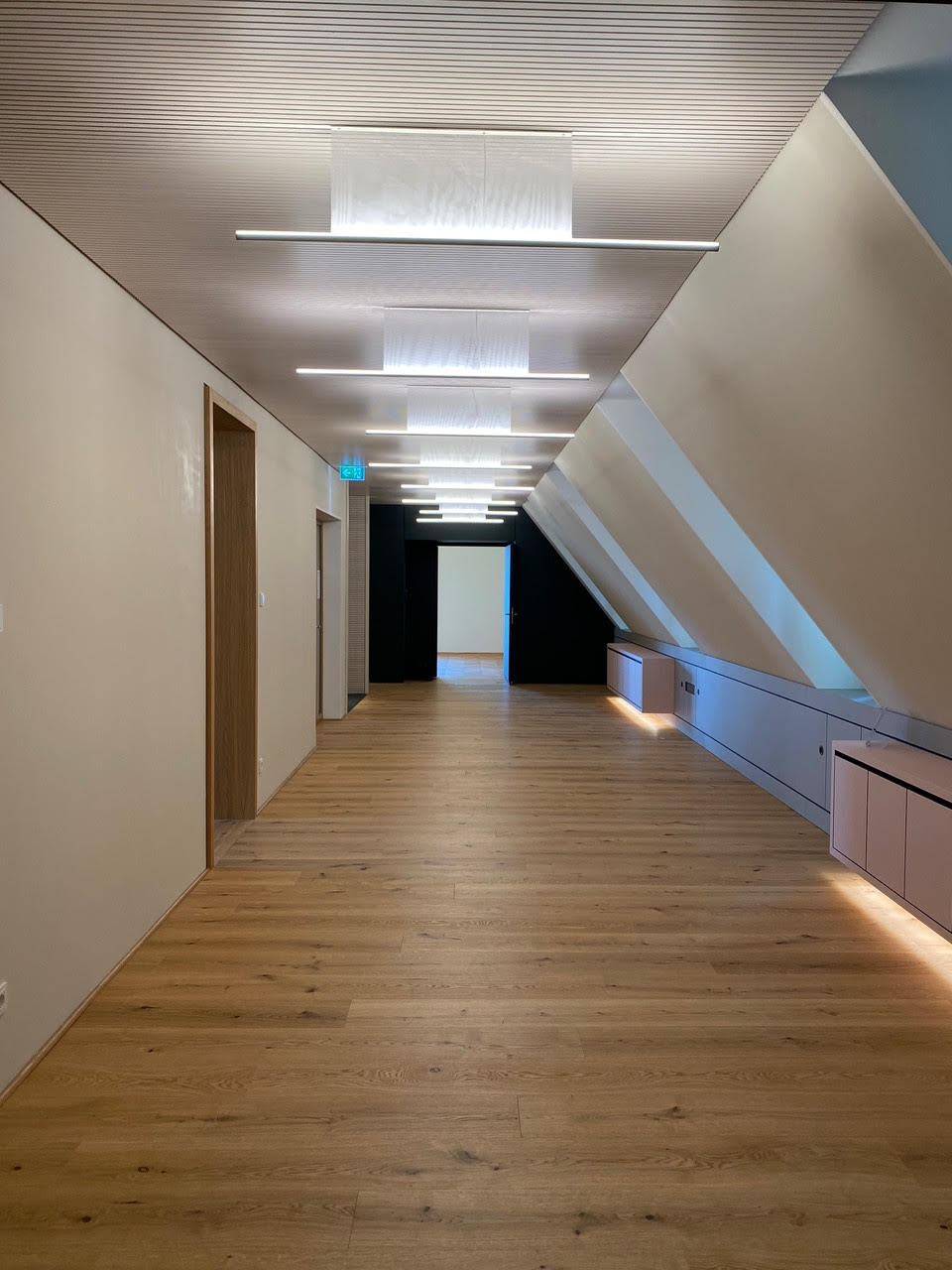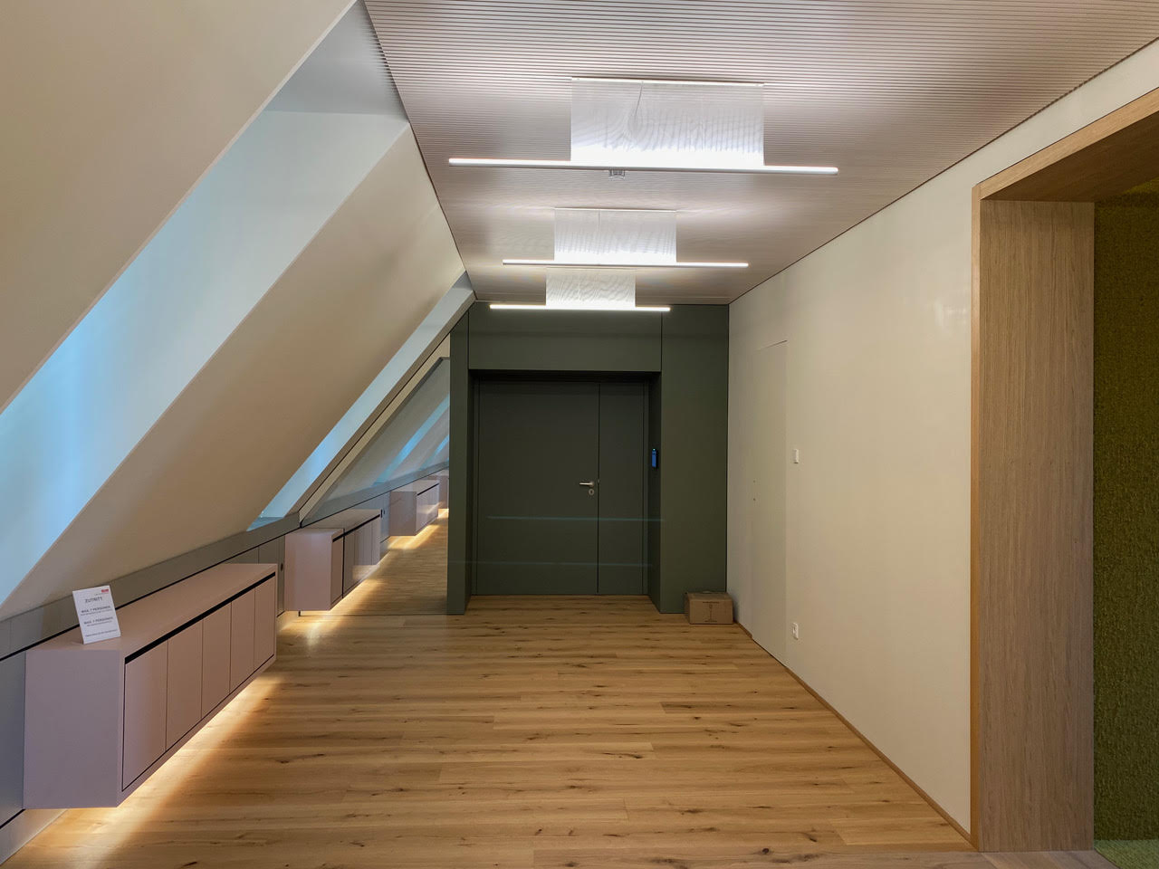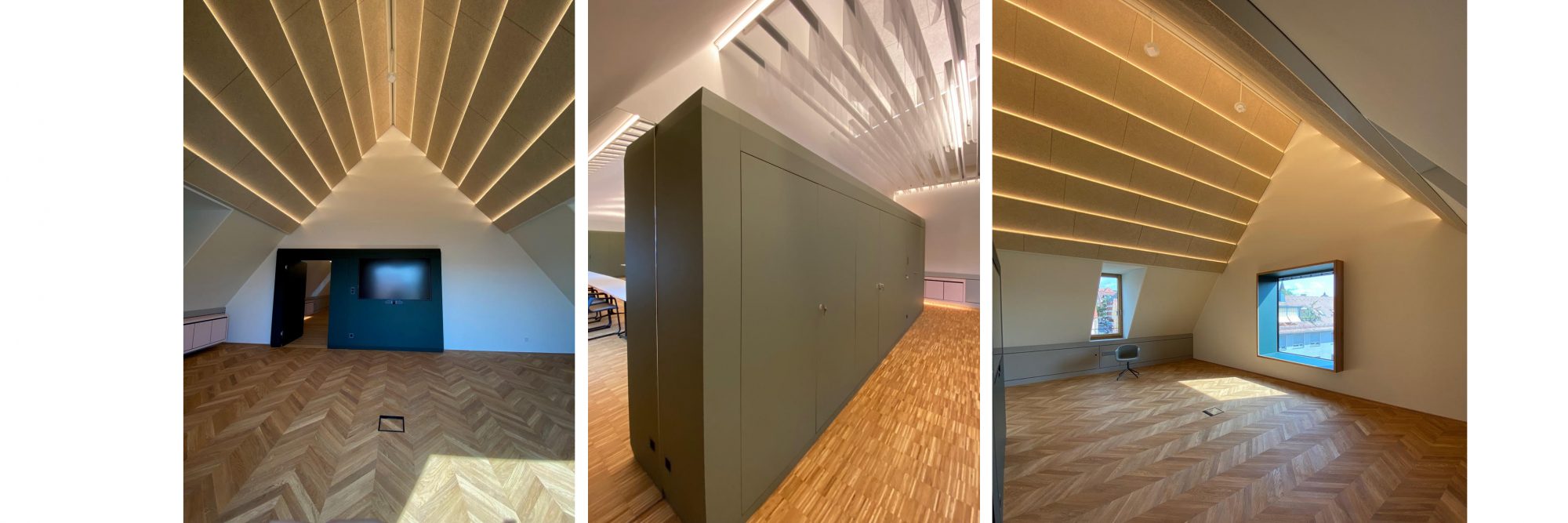 Folgende Punkte standen auf unser To-do-Liste: Decke mit LED Beleuchtung – Fenstereinfassung – Kniestockverkleidung mit Hängeschränke – Schrankwand mit integriertem TV und Schallschutztüre – Heradesigndecke mit Beleuchtung – Abgehängte Stofflammelen