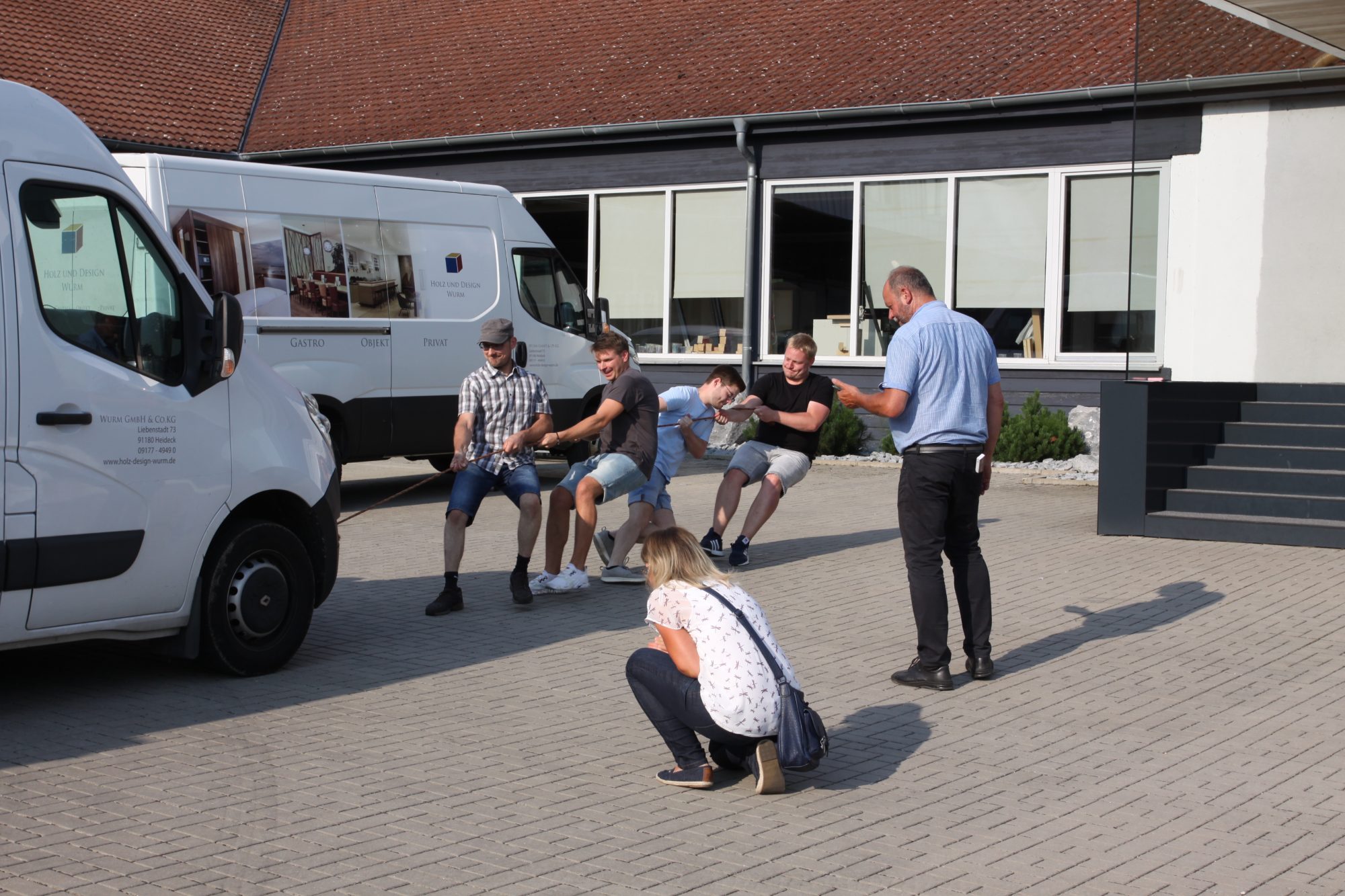 Bei schönem Wetter luden wir unsere Mitarbeiter mit Partner/in auf das Firmengelände ein. Bei einer Schreiner-Olympiade mit Disziplinen wie Holzsägen, Transporter-Tauziehen, Nageln, Cornhole und Fußballtorwand-Schießen erlebten die Teilnehmer auf eine etwas andere Art, nicht nur ihr Können unter Beweis zu stellen, sondern auch ihren Teamgeist geschickt einzusetzen.